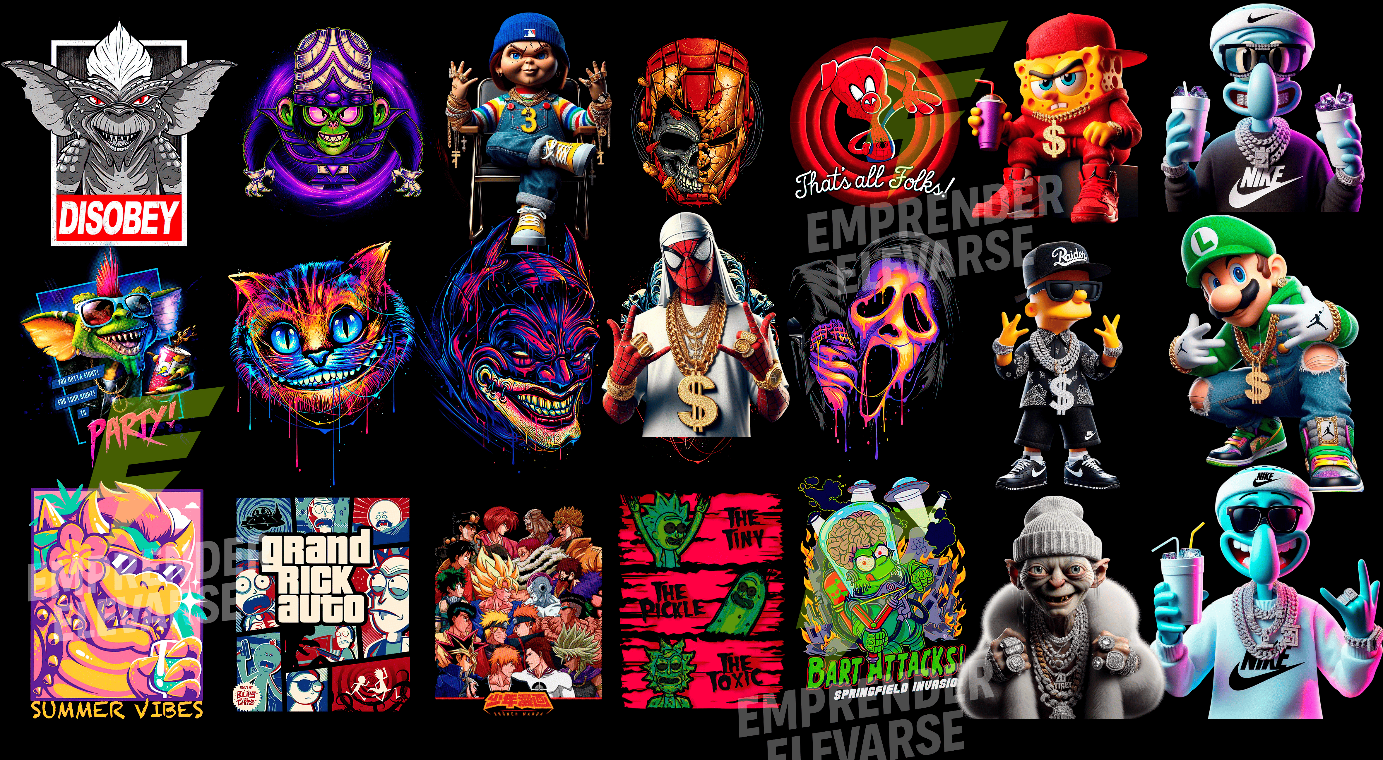 Accedé a una mega colección de diseños originales, listos para estampar en alta calidad (PNG 300 DPI).